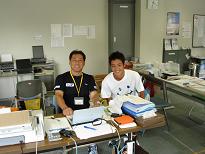 (大会本部で)