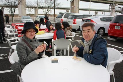 ヨネックスのバーゲンが終了後も、持ちつき大会はまだまだ続いており、営業の田村さんにも餅つきを楽しんで頂きました。