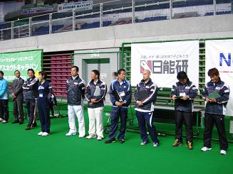 (右より 茶園・藤井・岩淵・辻野・田村・右近・森上・山本プロ)