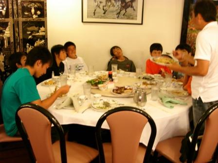 明日も決勝戦と、アップランドテニスクラブとの対抗戦があるので、しっかりと夕食をとり、早く寝て万全の体制で臨み、すべてのカテゴリーで優勝目指して欲しいと思います。