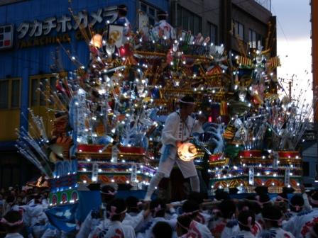 詳しくは解りませんが、地区ごとにテーマを決め、その内容にしたがって山笠を作成し、音楽に合わせた動きや、山笠のできばえを競うようです。