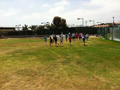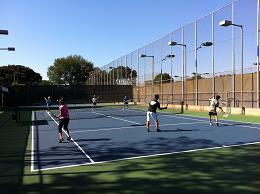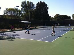 ミラコスタハイスクールでは、12~14:30まで練習し、遅めの昼食を取った後、高級住宅エリアのRolling Hillsにある、ペニンシュララケットクラブへ移動し、16~18:00まで練習です。